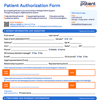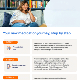 Madrigal Patient Support® is here to provide support along your treatment journey. Here are some important forms and helpful reference materials you may need along the way. You can also visit rezdiffra.com